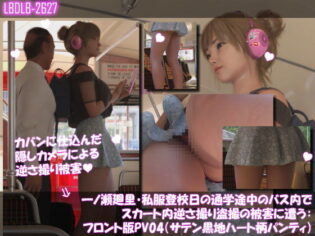 3DCG 一ノ瀬廻里・私服登校日の通学途中のバス内でスカート内逆さ撮り盗撮の被害に遭う:フロント版PV04(サテン黒地ハート柄パンティ)【アダルトマン・ドッと混む!】d_736879